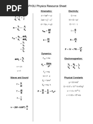 Kinematics Dynamics and Motion Mid Year Review THEPHYSICSCLASSROOMCOM Physics 11 Course Outline Formula Sheet Solving Word Problems Units Quick Quiz News forum Merrill Appendix B Solutions NY Regents Test Bank Dynamics Kinematics Vectors Momentum adn Impulse Work Energy and Power Special Relativity Waves Physics 11 Workbook Table Of. As such the Greater Victoria School Disctrict is not responsible for Google Translate. Physics Formula Sheet I.